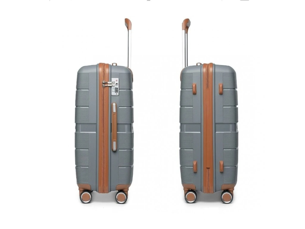 Kufr je vyroben z kvalitního polypropylenu s tichými dvojitými kolečky, hliníkovou výsuvnou rukojetí, TSA číselným zámkem a kvalitními zipy. Madlo kufru na horní i boční straně.
