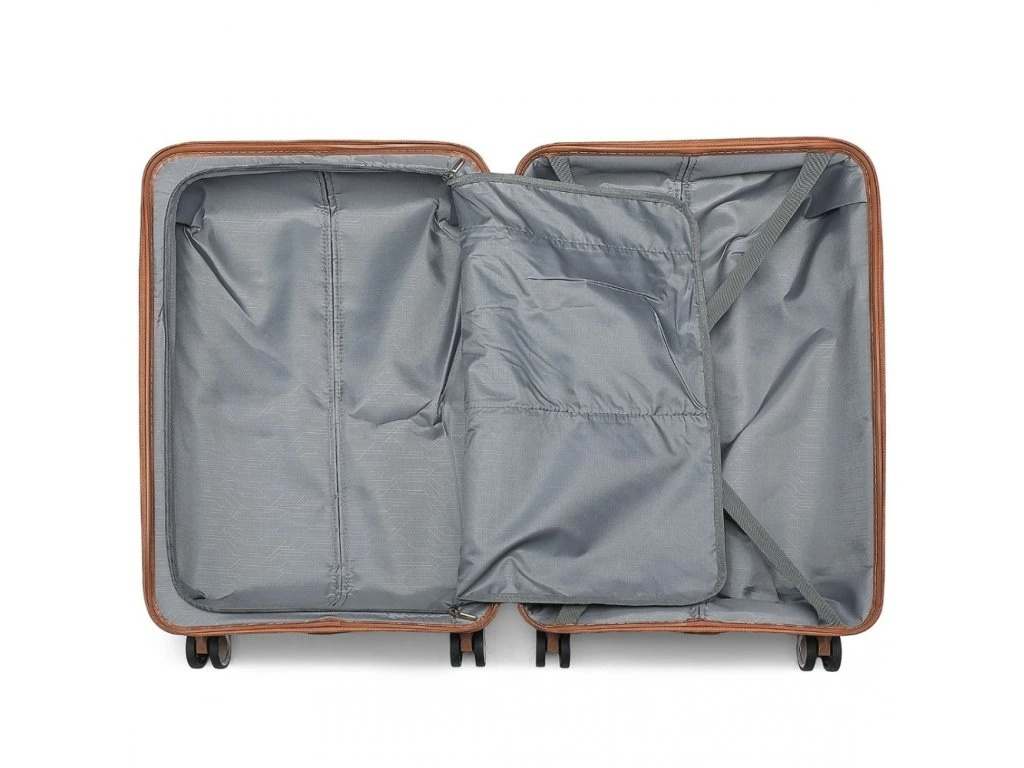 - Nylonové křížové popruhy pro upevnění obsahu na jedné straně. Zipem zavíraná přihrádka na druhé straně kufru včetně dvou síťovaných kapes pro lepší organizaci v kufru.