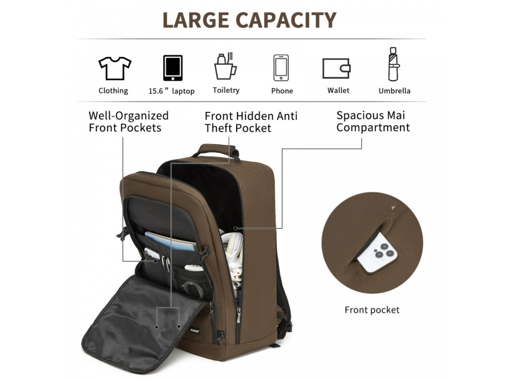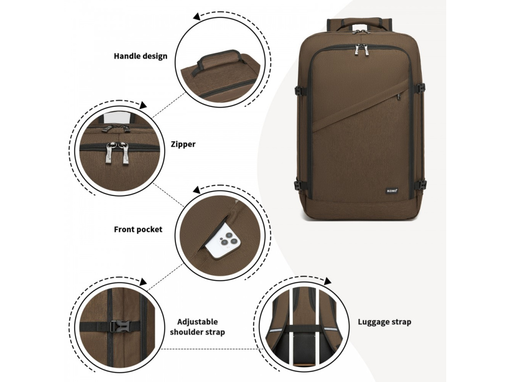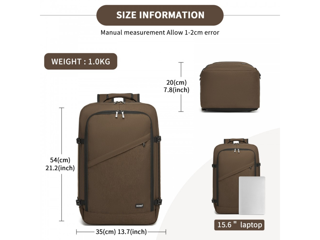 KONO 2531L Batoh na notebook 15.6" Hnědá 54cm 37L