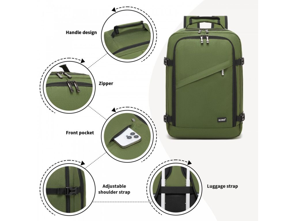 Batoh Kono BPK2551 40 × 30 × 20 cm je ideální batoh do letadla, který díky svým rozměrům splňuje limity pro kabinová zavazadla většiny aerolinek a ušetří vám poplatky za odbavení. Jeho hlavní předností je plně otevíratelná konstrukce, která umožňuje přehledné balení podobné jako do klasického kufru.