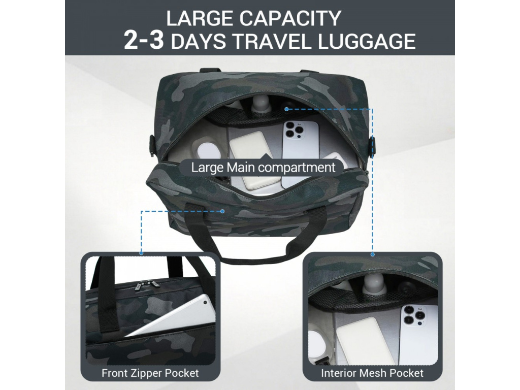Kono 2560 Voděodolná cestovní taška 15.6" 40cm Zelená Camouflage 24L
