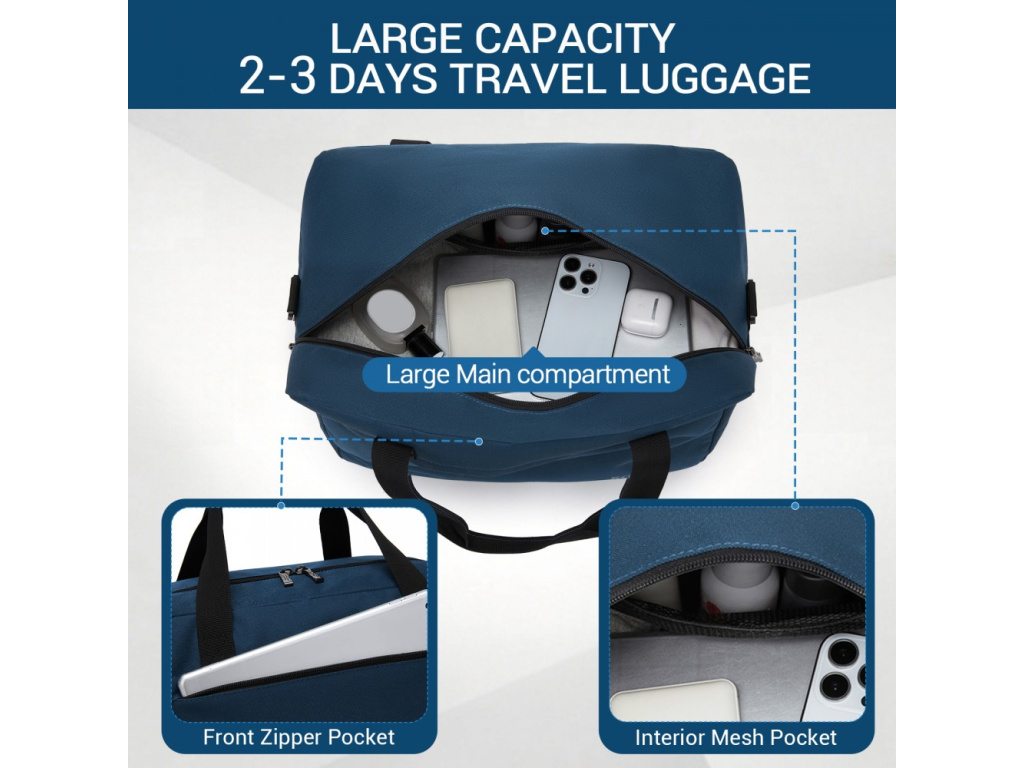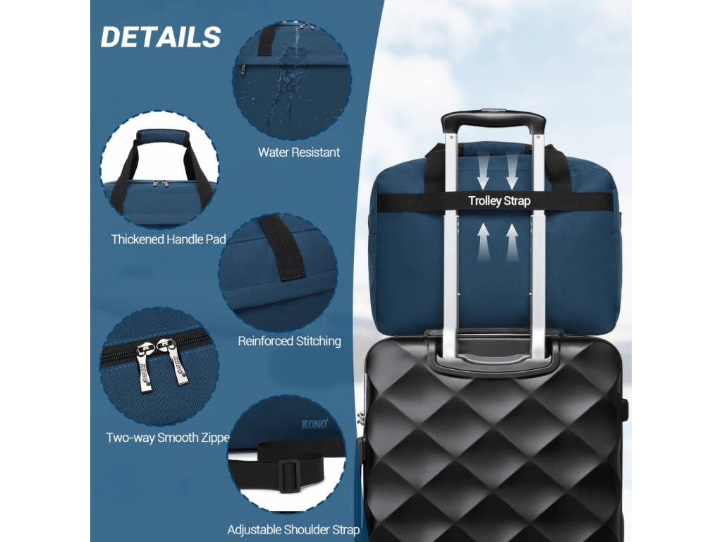 Praktická cestovní taška od značky Kono v rozměru 40 × 30 × 20 cm je ideální jako příruční zavazadlo do letadla i na krátké cesty. Díky kompaktním rozměrům splňuje požadavky mnoha leteckých společností pro zavazadlo pod sedadlo a přitom nabízí překvapivě prostorný interiér pro oblečení, sportovní věci nebo víkendovou výbavu. Taška je vyrobena z odolného polyesteru s voděodolnou úpravou, má praktické kapsy pro přehlednou organizaci a popruh pro nasunutí na rukojeť kufru. Nízká hmotnost a pohodlný ramenní popruh zajišťují komfort při každé cestě.