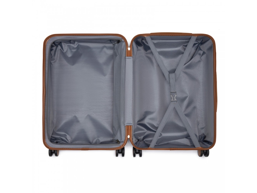- Nylonové křížové popruhy pro upevnění obsahu na jedné straně a zipem zavíraná přihrádka na druhé straně kufru