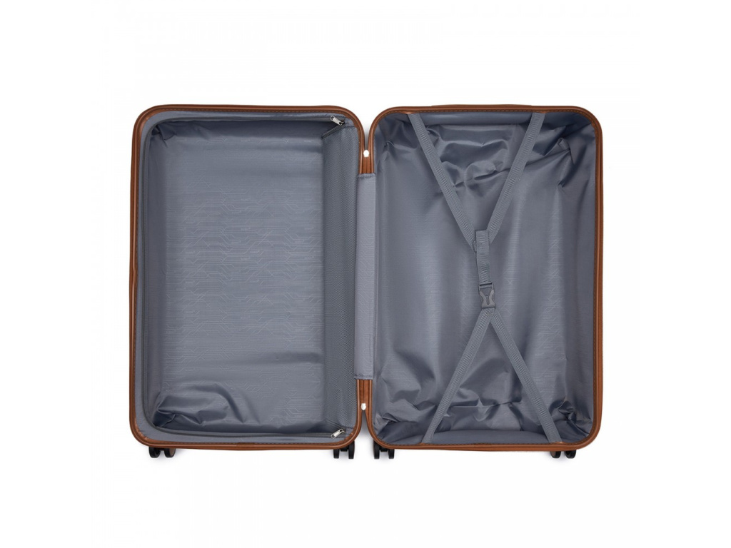 - Nylonové křížové popruhy pro upevnění obsahu na jedné straně a zipem zavíraná přihrádka na druhé straně kufru
