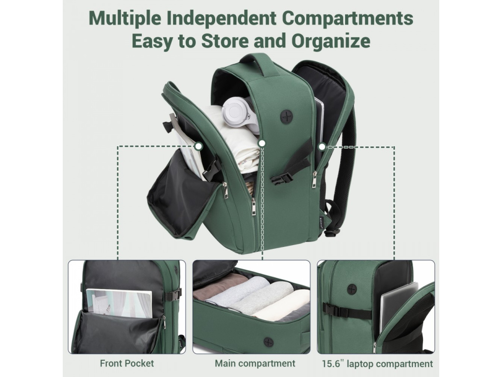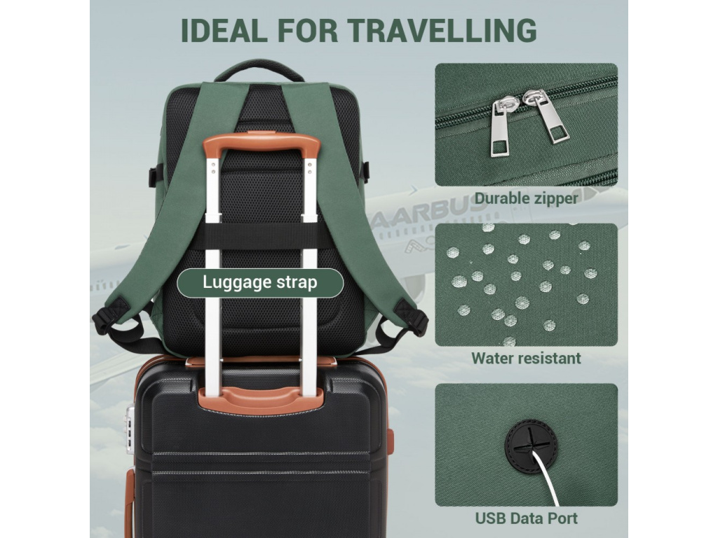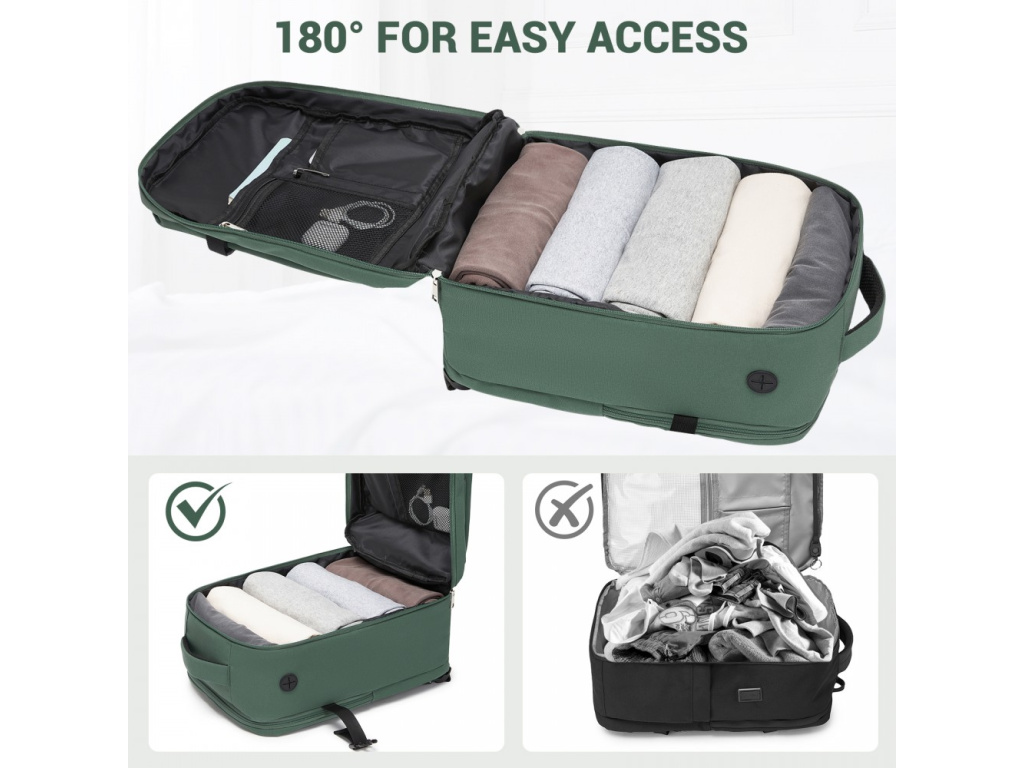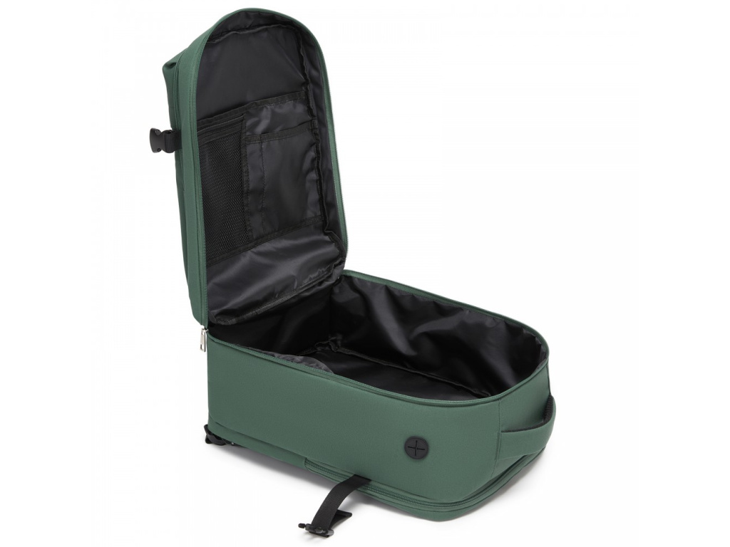 Praktický a přehledně řešený batoh vhodný jako příruční zavazadlo do letadla i pro každodenní použití. Hlavní prostor se otevírá po celém obvodu pro snadné balení, nechybí samostatná polstrovaná kapsa na notebook do velikosti 15,6" a řada menších přihrádek na dokumenty a drobnosti. Odolný materiál pomáhá chránit obsah před vlhkostí a opotřebením, zatímco měkce polstrované popruhy a zádová část zajišťují pohodlné nošení i při delším cestování. Ideální volba do práce, školy i na krátké výlety.