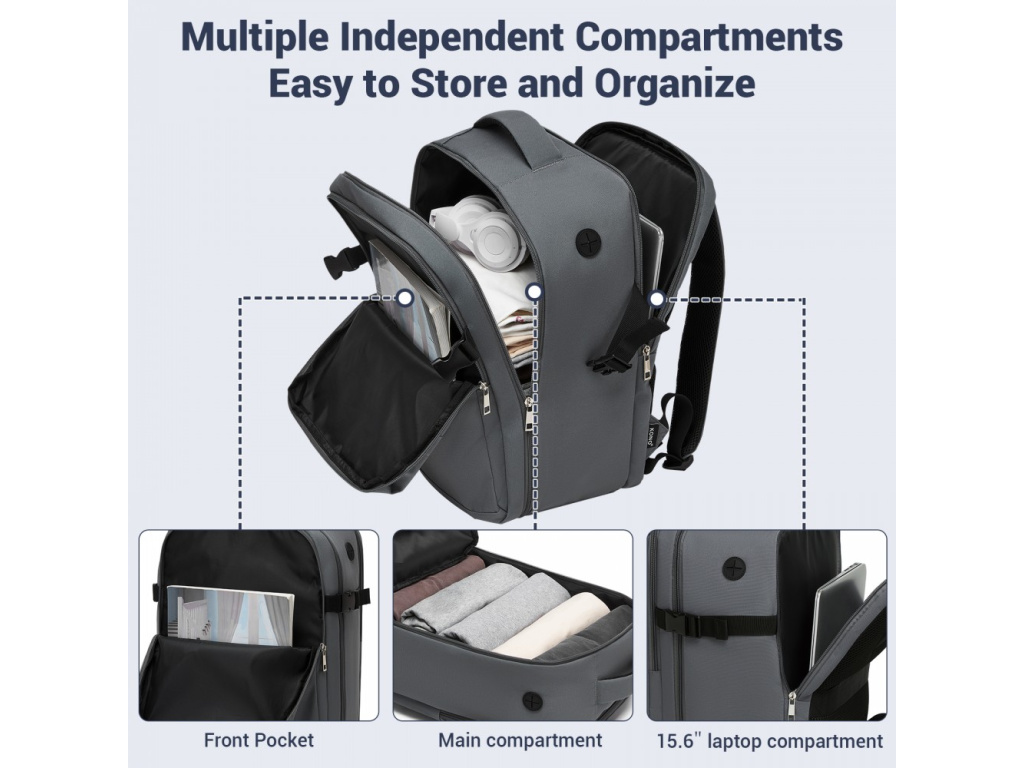 Praktický a přehledně řešený batoh vhodný jako příruční zavazadlo do letadla i pro každodenní použití. Hlavní prostor se otevírá po celém obvodu pro snadné balení, nechybí samostatná polstrovaná kapsa na notebook do velikosti 15,6" a řada menších přihrádek na dokumenty a drobnosti. Odolný materiál pomáhá chránit obsah před vlhkostí a opotřebením, zatímco měkce polstrované popruhy a zádová část zajišťují pohodlné nošení i při delším cestování. Ideální volba do práce, školy i na krátké výlety.