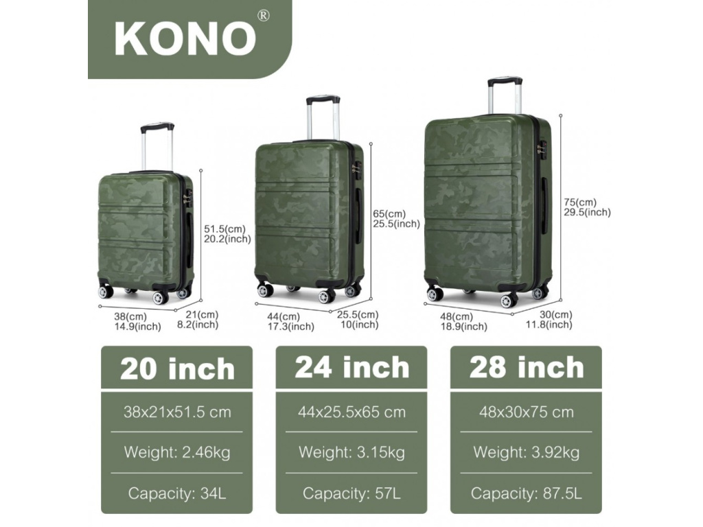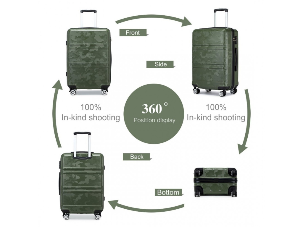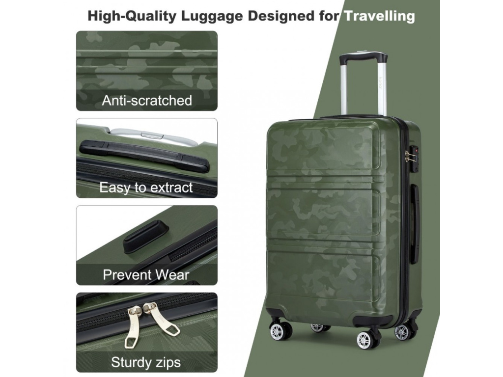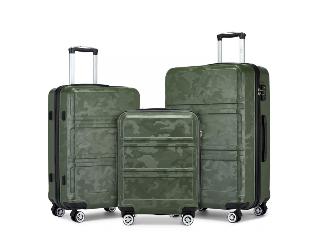 Kono K1871-1L Sada 3 kufry spinner 52/65/75cm Zelená Camouflage ABS