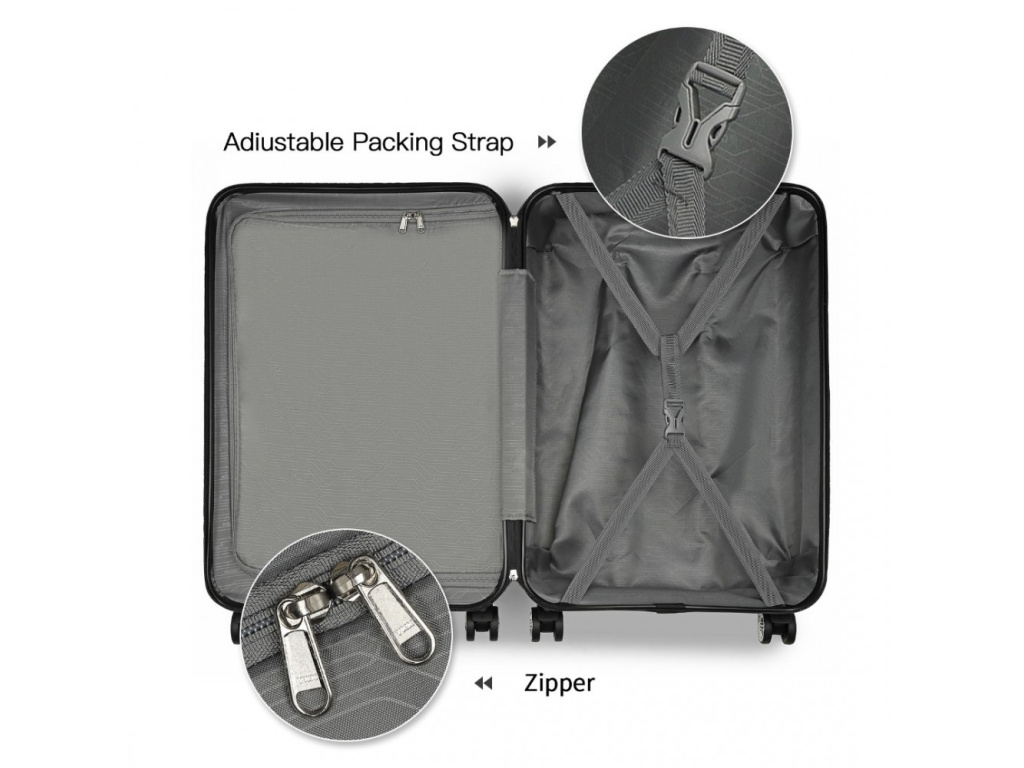 Vyroben z ABS s tichými dvojitými kolečky, hliníkovou výsuvnou rukojetí nebo TSA číselným zámkem. ABS materiál nabízí odolnost proti poškrábání a je vhodný do nízkých teplot. ABS materiál není tolik pružný jako polypropylen ale pro občasné cesty je plně dostačující.
