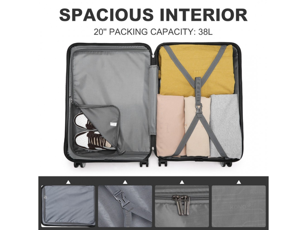 Sada 3 kufrů značky KONO, která nabízí kvalitní zavazadla za dostupné ceny.Tato značka je velmi známá v Západní Evropě pro optimální kombinaci ceny a výkonu. Od svého vzniku se zaměřuje na segment střední třídy. V sortimentu tak nenajdeme nejlevnější kufry, ale pouze modely s kvalitními komponenty (zámky, kolečka nebo skořepiny). Tuto značku jsme zařadili do našeho sortimentu právě s ohledem na kvalitní zpracování.