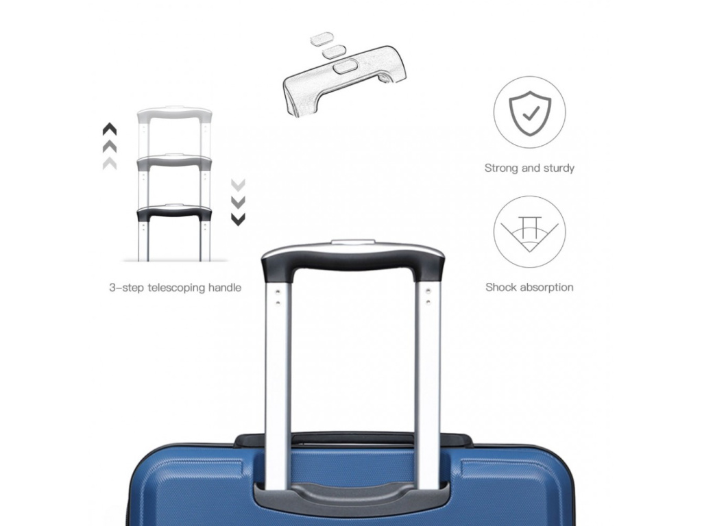 Kufry jsou vyrobeny z materiálu ABS s hliníkovou výsuvnou rukojetí a TSA číselným zámkem. ABS materiál je pevný, nabízí odolnost proti poškrábání a je vhodný do nízkých teplot. Tento materiál není tolik pružný jako polypropylen ale pro nenáročné cesty je plně dostačující.