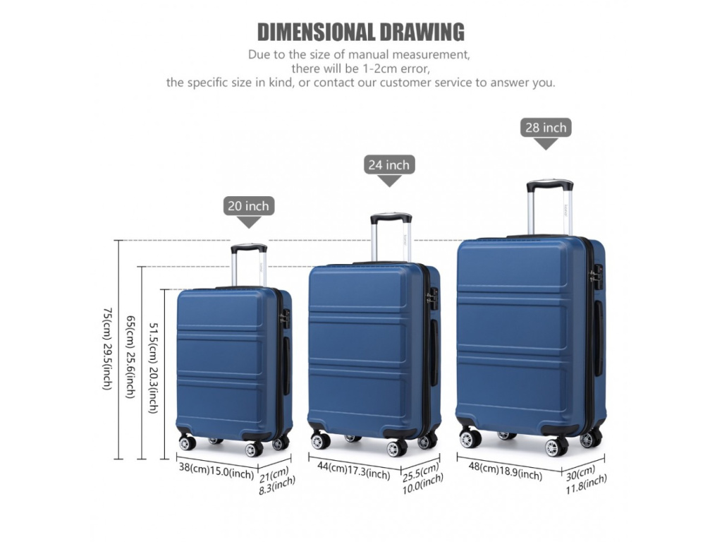 Kono K1871-1L Sada 3 kufry spinner 52/65/75cm Modrý ABS