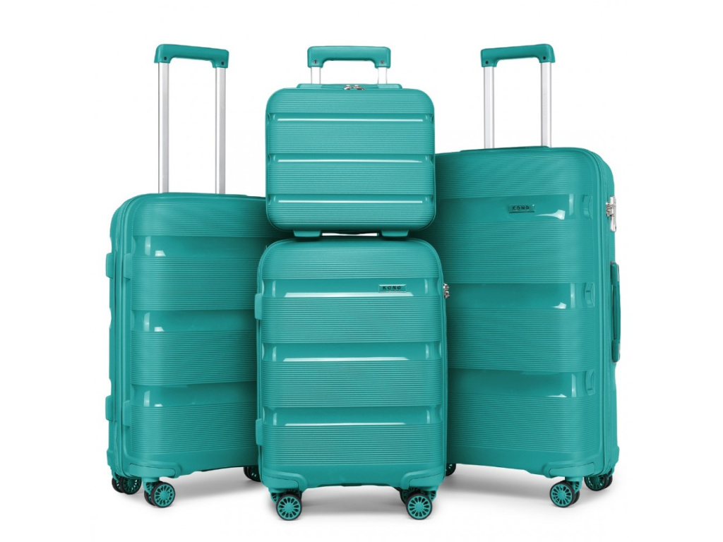 Kono K2092L Sada 4 kufrů 31/55/65/76cm spinner Modrozelený Polypropylen