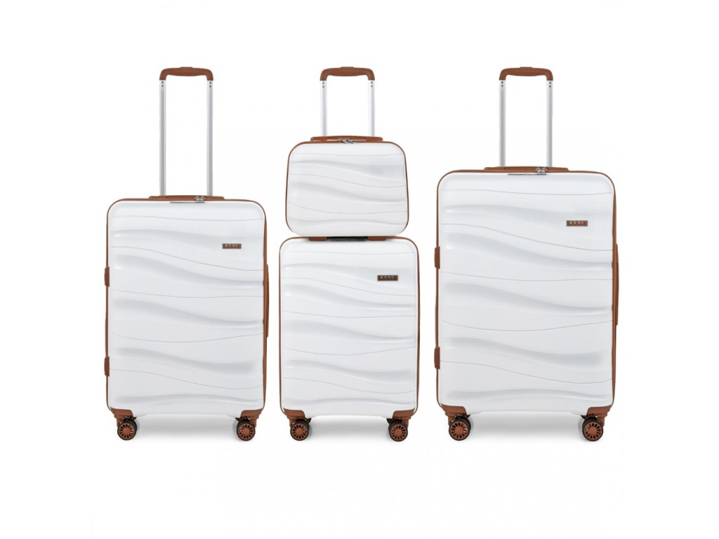 Kono K2094L Sada kufrů 4ks spinner 30cm 55cm 66cm 76cm Krémový Polypropylen