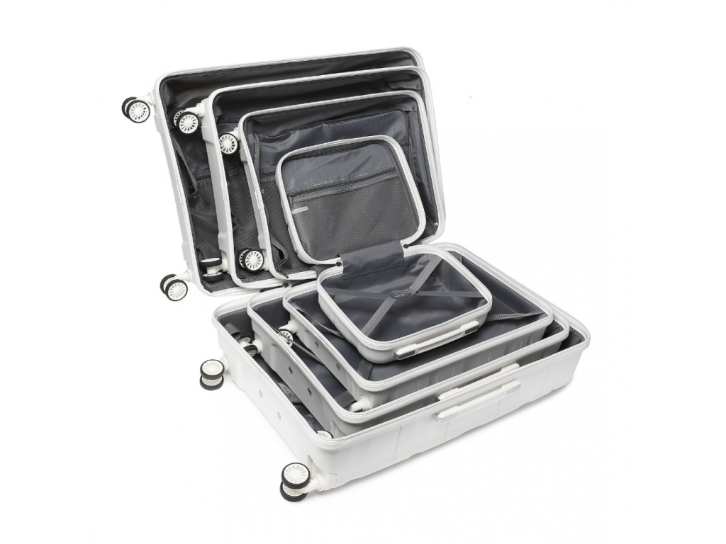 Sada obsahuje 4 kufry rozměrů S, M a L pro cestování s různými potřebami a délkami doplněno malým příručním kufříkem například do letadla. Kabinový S kufr na víkendové nebo lehčí týdenní cesty. Střední M kufr na týdenní cesty a L kufr i na dvoutýdenní dovolené.