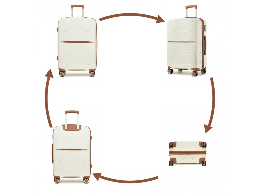 Kono 2591 Sada 3 kufrů 55cm 66.5cm 75.5cm spinner Krémová Polypropylen