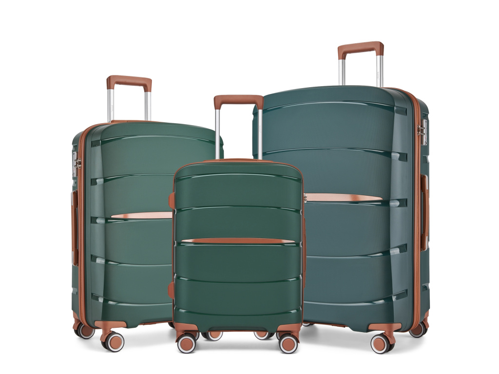 Kono 2591 Sada 3 kufrů 55cm 66.5cm 75.5cm spinner Zelená Polypropylen
