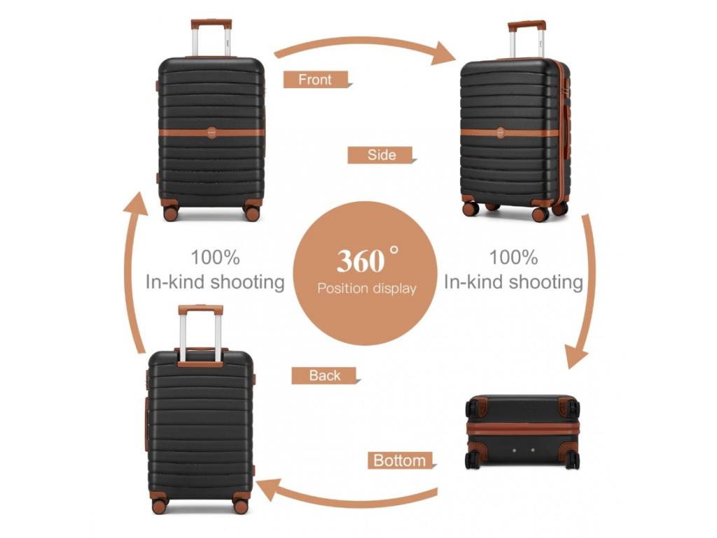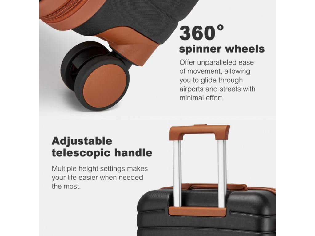 Kono 2592 Sada 3 kufrů Spinner 55/65/75cm Černá ABS/Polykarbonát