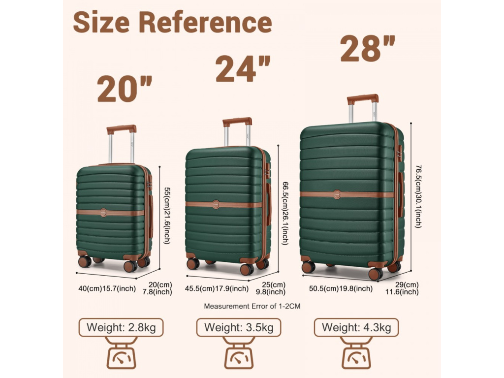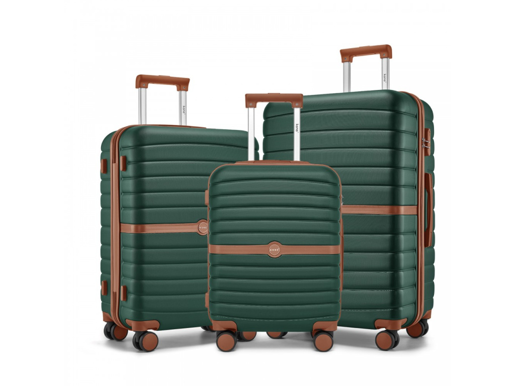 Kono 2592 Sada 3 kufrů Spinner 55/65/75cm Zelená Dark Green ABS/Polykarbonát