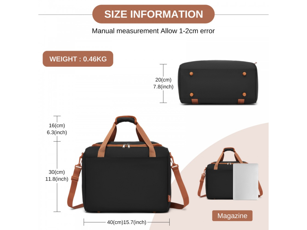 Kono TVK2521 Cestovní taška do letadla 40cm Černá/Hnědá 24L