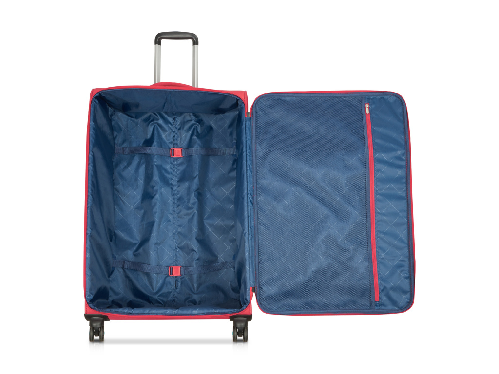 Vnitřek kufru je vybaven stahovacími popruhy a velkou kapsou na zip.