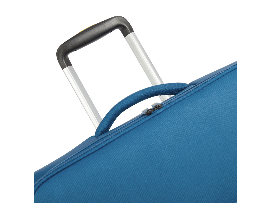 Výsuvné madlo s nastavením výšky a čtyři dvojitá kolečka otočná o 360° vám umožní maximální pohodlí při cestování.