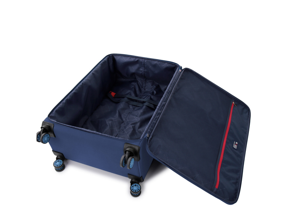 Rozdělení vnitřního prostoru disponuje nejen velkou vnitřní kapsou, ale také další menší kapsou, kterou lze využít pro uskladnění drobných věcí nebo kosmetických potřeb. Křížové popruhy udržují věci v kufru na svých místech. K pohodlnému přesunu napomáhá teleskopické a horní madlo.