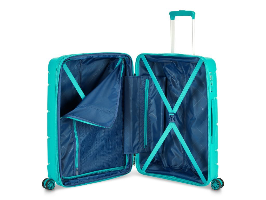 Uvnitř kufru Roncato Starlight 3.0 najdete promyšleně rozvržené prostory, disponující velkou přihrádkou na zip na straně jedné a popruhy na obou stranách, které vám umožní oddělit různé typy oblečení či osobní předměty.