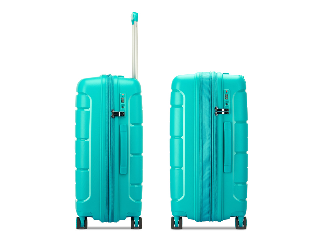 Kufry jsou vyrobeny ze 100 % polypropylenu, což zaručuje vysokou odolnost proti nárazům a poškrábání . Přestože je tento materiál extrémně pevný, je také velmi lehký .
