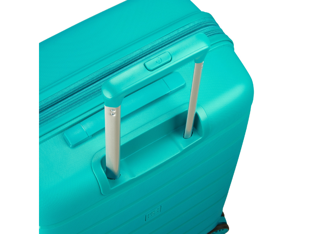Pro pohodlné převážení z místa na místo je kufr vybaven čtyřmi dvojitými kolečky, která se otáčejí v plném rozsahu 360°. Snadnou manipulaci umožňuje polohovatelná trolej s nastavitelnou délkou.