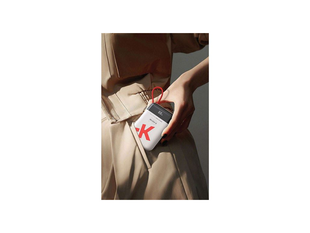 Powerbanka má ergonomický tvar a nízkou hmotnost, to z ní dělá ideálního společníka na cesty. Integrovaný USB-C kabel, který zároveň slouží jako praktické poutko na přenášení, usnadňuje každodenní používání. Díky displeji máte vždy přehled o dostupné energii a stavu nabíjení či dobíjení.