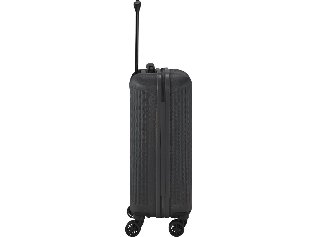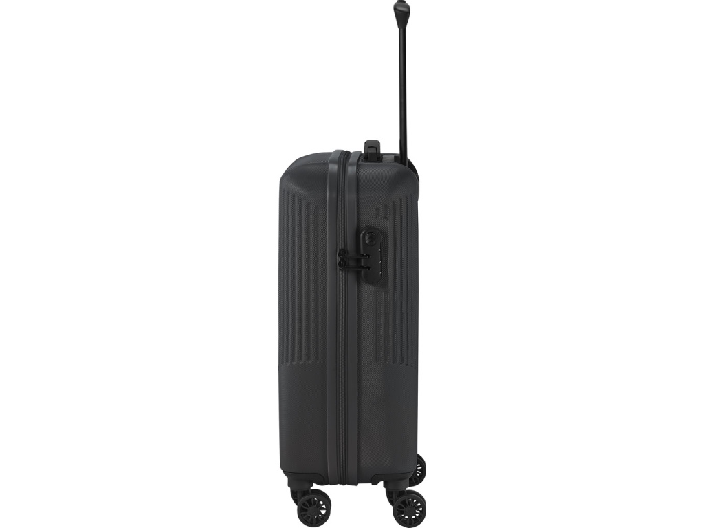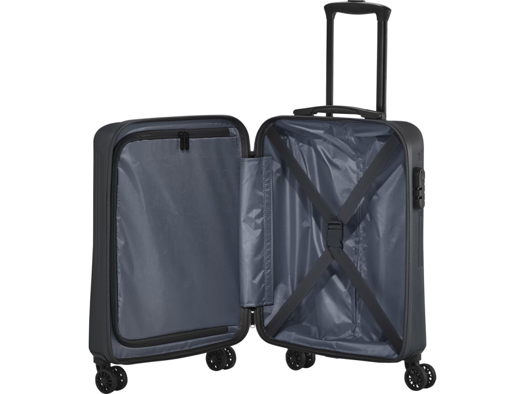 Jednoduše navržený interiér s látkovou příčkou a popruhy pomůže rychle a přehledně sbalit vše potřebné na delší cesty i kratší pobyt mimo domov. Skořepina z odolného tvrdého plastu s hrubým povrchem a integrovaný zámek ochrání uložené věci během přepravy. Čtyři kolečka usnadní jízdu v terénu i manipulaci s plně naloženým zavazadlem.