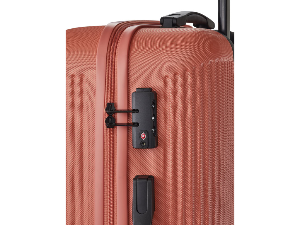 Čtyřkolečkový skořepinový kufr z robustního ABS plastu v trendy pastelové barvě vybavený integrovaným TSA zámkem.