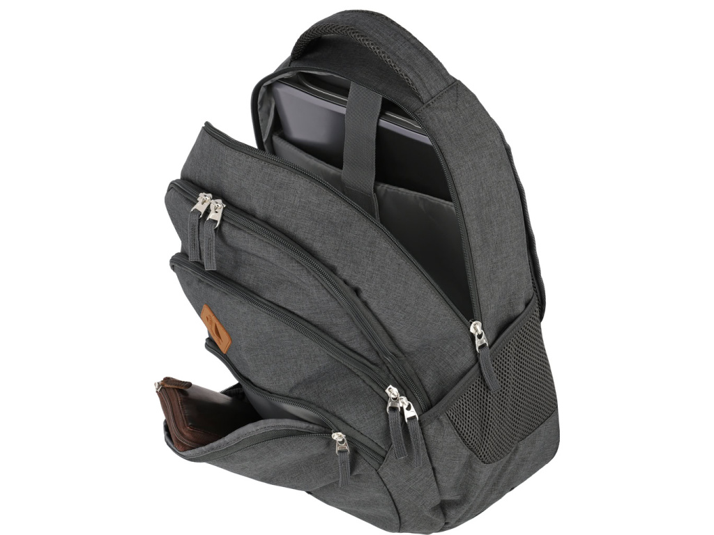 Ať už máte namířeno do práce, školy či na výlet, dvoukomorový batoh Backpack Melange z řady Basics s vámi udrží tempo po celý den! Komfortní zádový panel a nastavitelný hrudní popruh zaručí pohodlné nošení, zatímco integrovaná přihrádka na notebook s jistícím popruhem ochrání elektroniku před nárazy a otřesy. Praktické vnitřní členění vám zase umožní přehledně si uspořádat nejen dokumenty a složky, ale i příslušenství či psací potřeby. Batoh rovněž splňuje normy pro palubní zavazadla většiny aerolinií, můžete jej tedy bez obav použít i jako příruční zavazadlo.