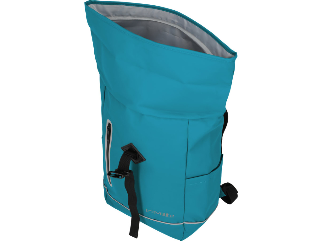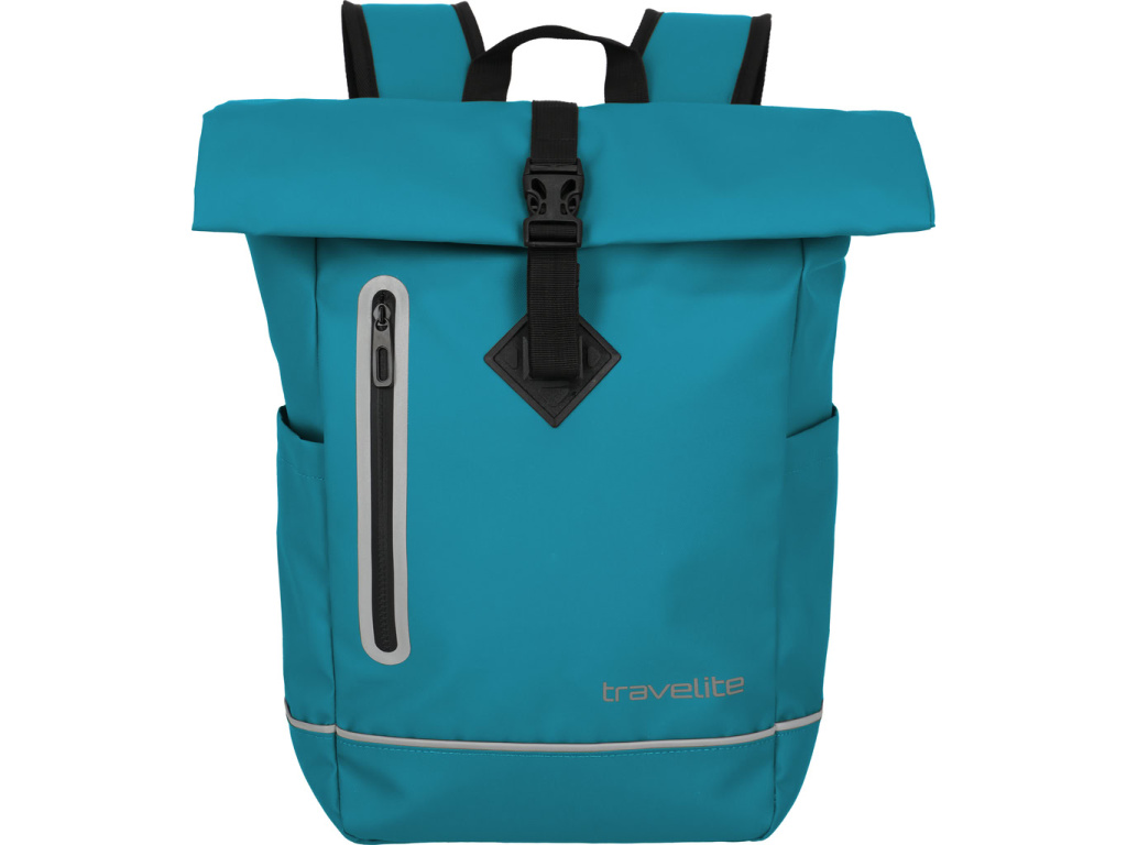 Všestranný batoh Travelite Basics Roll-up Plane je jako stvořený na cesty do školy, práce, města i na výlety na kole, skútru či příležitostnou turistiku. Prostorná komora se flexibilně přizpůsobí vašim potřebám, pojme dokumenty, knihy a složky formátu A4, ve volném čase pak sportovní věci na trénink či kurz. Vydat se s ním můžete i na projížďku po okolí, a to klidně i v dešti. O bezpečí vašich věcí se totiž postará lehký, pevný a nepromokavý tarpaulin, na který je společně s rolovacím zavíráním i nehezké počasí krátké. Na silnici budete navíc vždy dobře vidět díky reflexním prvkům, pohodlné nošení zajistí nastavitelné a polstrované ramenní popruhy a prodyšný zádový panel.