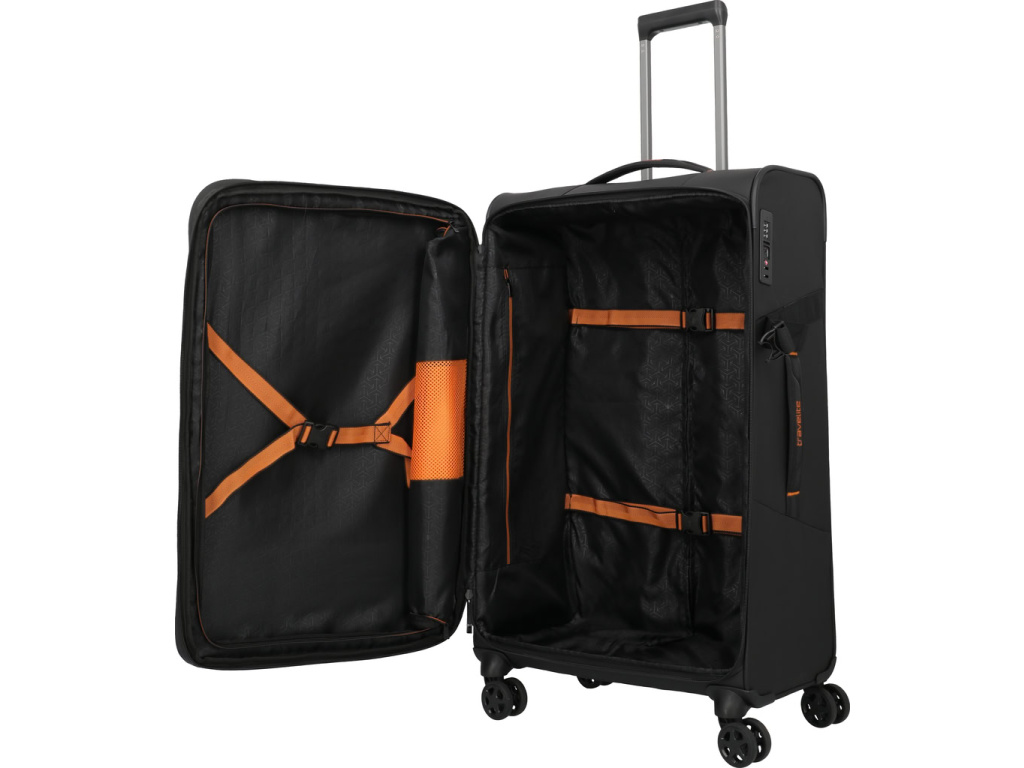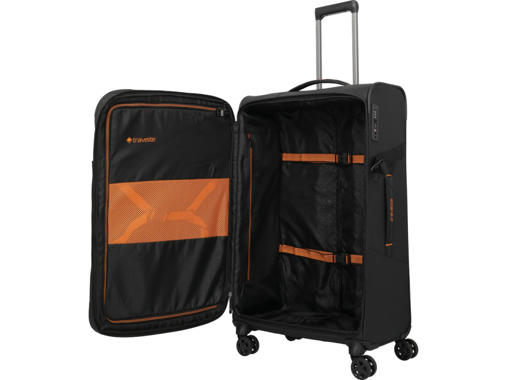 Celá tato řada se vyznačuje vysokým komfortem při manipulaci, snadným manévrováním díky čtyřem dvojitým kolečkům a bezpečným uzamykáním pomocí integrovaného TSA zámku. Nechybí ani praktické vnitřní členění se síťovanými kapsami a fixačními popruhy, které usnadňují přehledné balení. Kufry Travelite Briize tak oceníte při každé cestě – ať už se vydáváte na víkendový výlet, pracovní cestu nebo delší dovolenou.