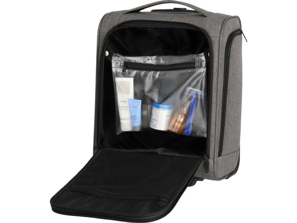 Zažijte absolutní svobodu na cestách! Travelite Cabin 2w Underseater je navržen tak, aby jeho rozměry splnily normy pro palubní zavazadla většiny aerolinek. Moderní kufr z odolného materiálu se dvěma kapsami na doklady a vyjímatelným pouzdrem na tekutiny se vejde pod sedadlo v letadle i do palubní přihrádky. Hlavní prostor uzavíratelný zipem s očky pro sepnutí zámkem, dvě kolečka a popruh pro nasunutí na madlo dalšího kufru se postarají o bezpečnou a snadnou přepravu věcí, kdykoli vyrazíte do světa.