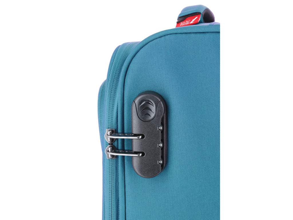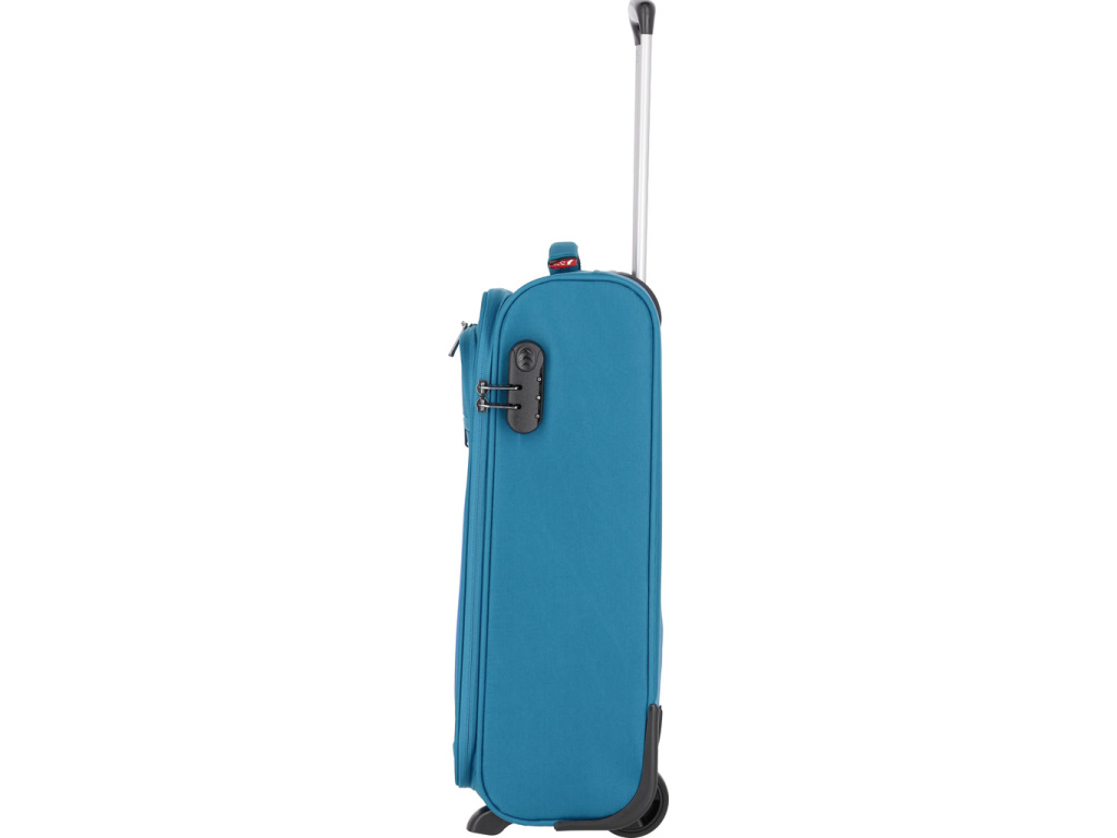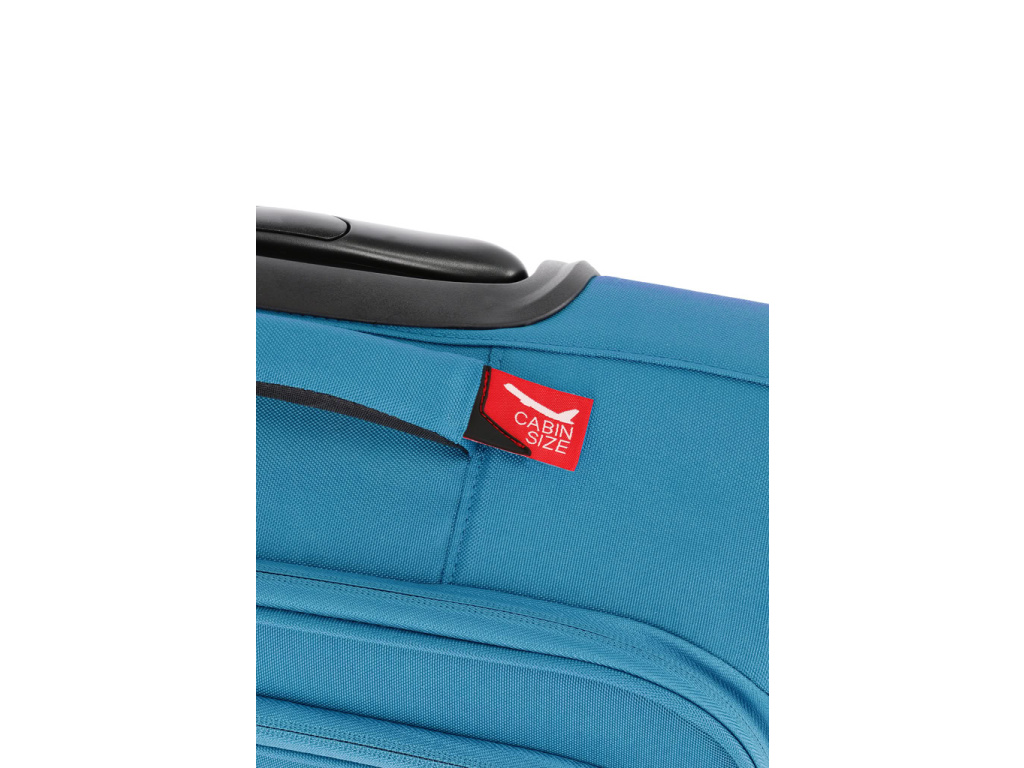 Textilní palubní kufr na dvou kolečkách v nadčasovém designu.