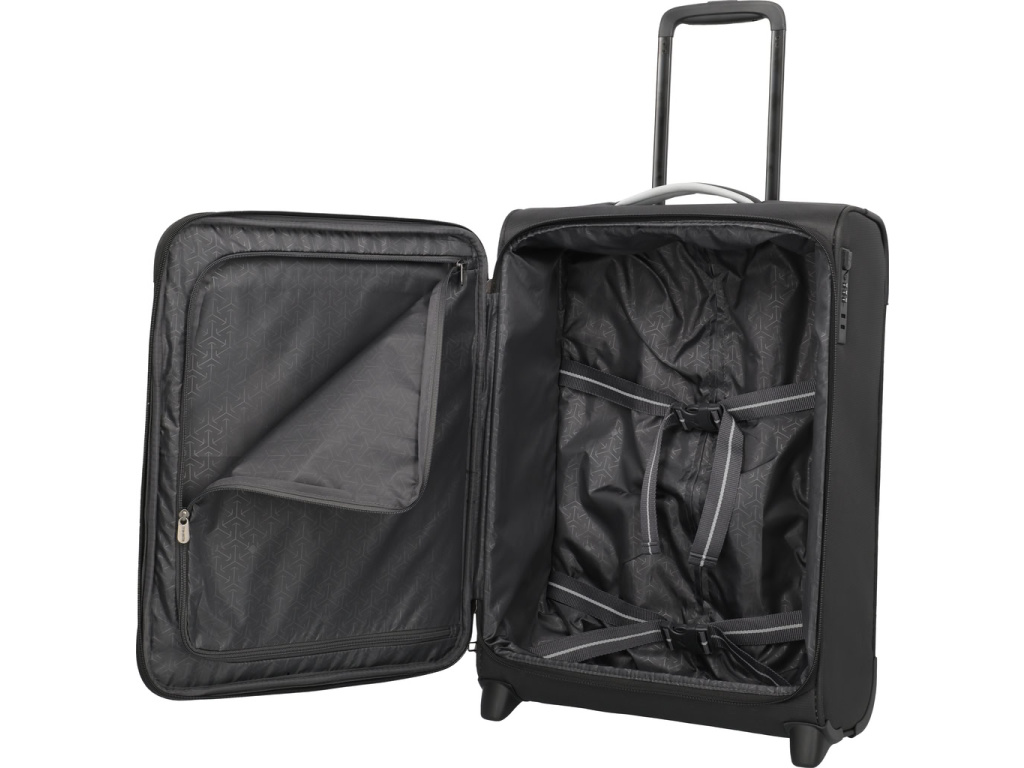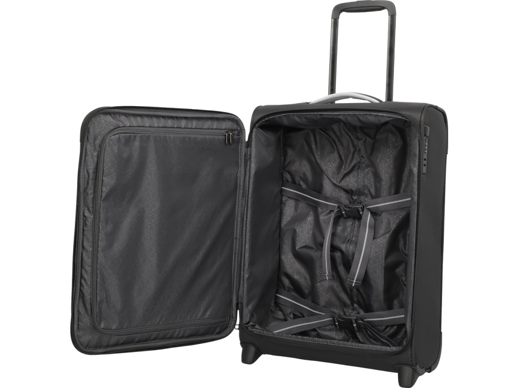 Tento velmi lehký kufr je ideální volbou pro cestování s aerolinkami Condor i Ryanair (za příplatek). Lehká konstrukce a dvě pevná kolečka zajišťují snadnou manipulaci, zatímco integrovaný kombinační zámek a nastavitelné vnitřní popruhy se postarají o bezpečné a přehledné uložení obsahu. Dvě praktické přední kapsy na zip umožňují rychlý přístup k drobnostem a cestovním dokumentům. Praktický společník pro krátké cesty i časté lety. Kufr je opatřen reflexními prvky, díky kterém budete za tmy lépe vidět.
