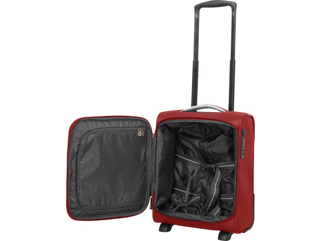 Underseater S Easy je ideální příruční zavazadlo pro aerolinky EasyJet, Vueling a Wizz. Kompaktní a lehký design spolu s dvěma pevnými kolečky zajišťují snadnou manipulaci, zatímco integrovaný kombinační zámek, dělicí přepážka a nastavitelné popruhy uvnitř udrží vaše věci přehledně a bezpečně. Dvě praktické přední kapsy na zip umožňují rychlý přístup k drobnostem a cestovním dokumentům. Kufr je opatřen reflexními prvky, díky kterým budete za tmy lépe vidět.