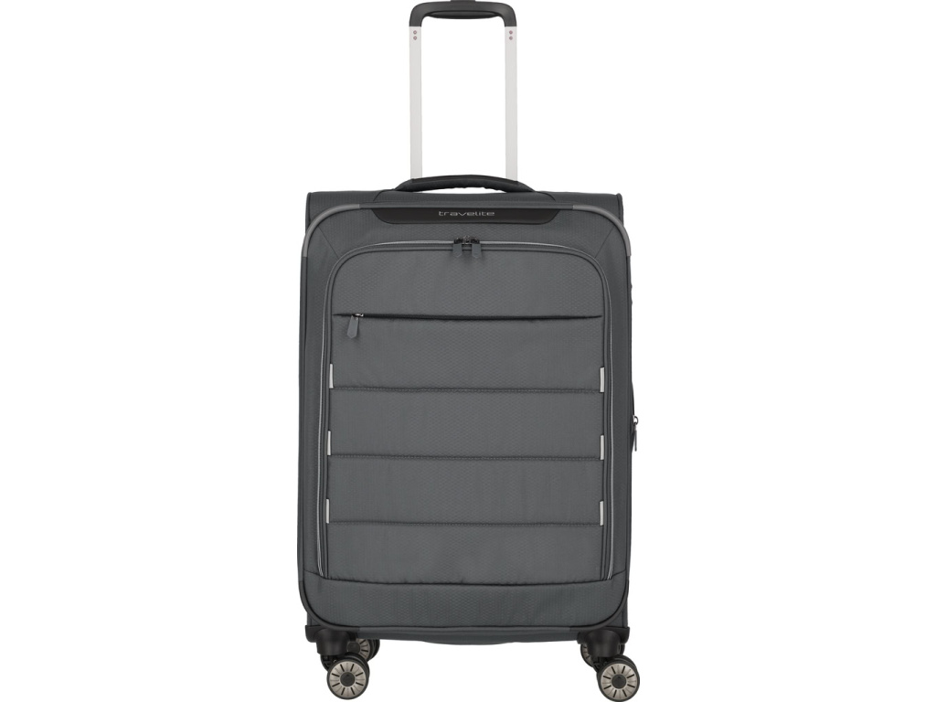 Superlehký a prostorný kufr Travelite Skaii z udržitelného materiálu se postará o váš bezstarostný život na cestách i čistější životní prostředí. Recyklovaný polyester vyrobený z vláken recyklovaných plastových lahví (rPET) pomáhá šetřit suroviny a snižovat množství plastového odpadu. Díky promyšlenému funkčnímu interiéru s fixačními popruhy, oddílem na košile a dvěma kapsami na zip budete mít vždy dokonalý přehled o tom, co jste si kam sbalili. Přední kapsy pojmou cestovní doklady, mobil, nabíječku a další nezbytnosti, které si chcete nechat při ruce. TSA zámek usnadní kontrolu obsahu zavazadla při cestování mezi kontinenty. Kvalitní otočná kolečka, úchyt na dně, dvě pevná madla a odlehčená rukojeť zajistí pohodlnou manipulaci. Kufr je navíc vybaven expandérem pro navýšení objemu.