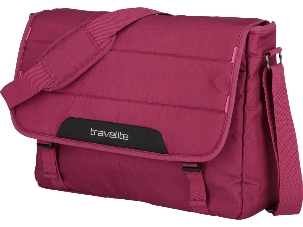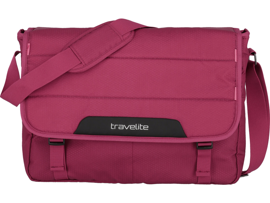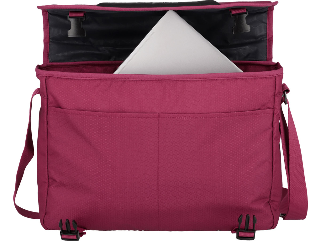 Extra lehká taška přes rameno s klopou na přezky, přihrádkou na 15,6" notebook a odnímatelným popruhem vyrobená z recyklovaného polyesteru.