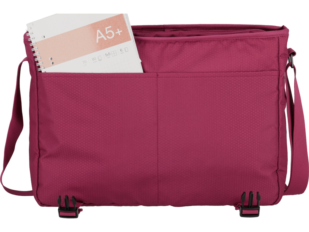 Superlehká brašna přes rameno z udržitelného materiálu se postará o váš bezstarostný každodenní život na cestách i čistější životní prostředí. Recyklovaný polyester vyrobený z vláken recyklovaných PET lahví (rPET) pomáhá šetřit suroviny a snižovat množství nevyužitého plastového odpadu. Do hlavní komory snadno uložíte složky a dokumenty formátu A4, do samostatné přihrádky pak klasický notebook. Díky organizéru budete mít při ruce psací potřeby nebo vizitky. Přední kapsy pojmou diář, blok na poznámky či příslušenství k laptopu. Zadní stranu tašky tvoří kapsa na zip, do níž bezpečně uschováte klíče, mobil a peněženku. Taška je ideální na cesty do práce i města a lze ji nosit stylem crossbody.